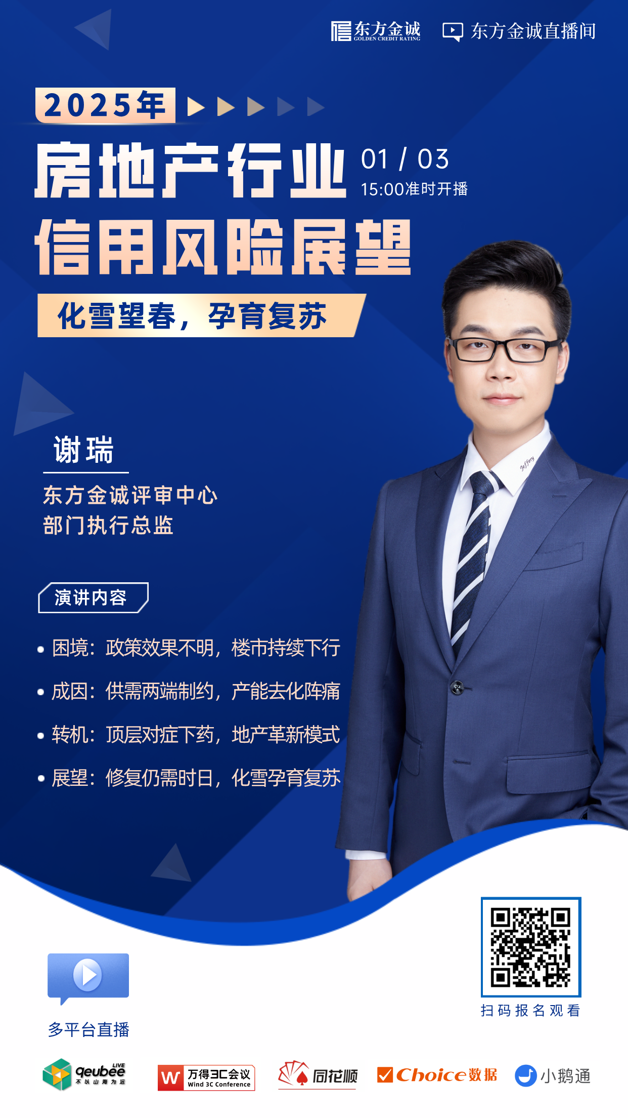 为了更好地发挥金诚研究“三个服务”的作用,进一步强化与社会各界的学习、研讨和交流,东方金诚于2025年1月3日组织“化雪望春 孕育复苏——2025年房地产行业信用风险展望”线上交流会,分享对相关领域的研究和思考。