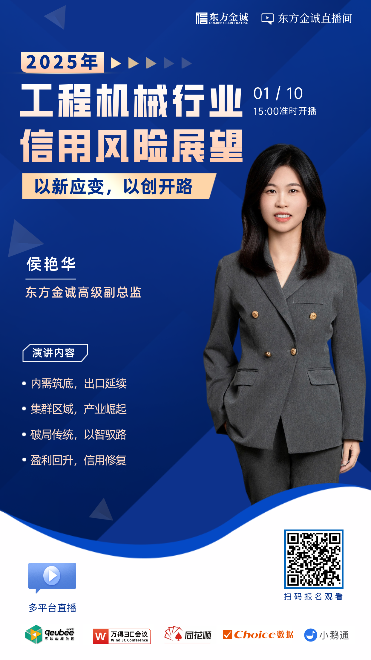为了更好地发挥金诚研究“三个服务”的作用,进一步强化与社会各界的学习、研讨和交流,东方金诚于2025年1月10日组织“以新应变 以创开路——2025年工程机械行业信用风险展望”线上交流会分享对相关领域的研究和思考。