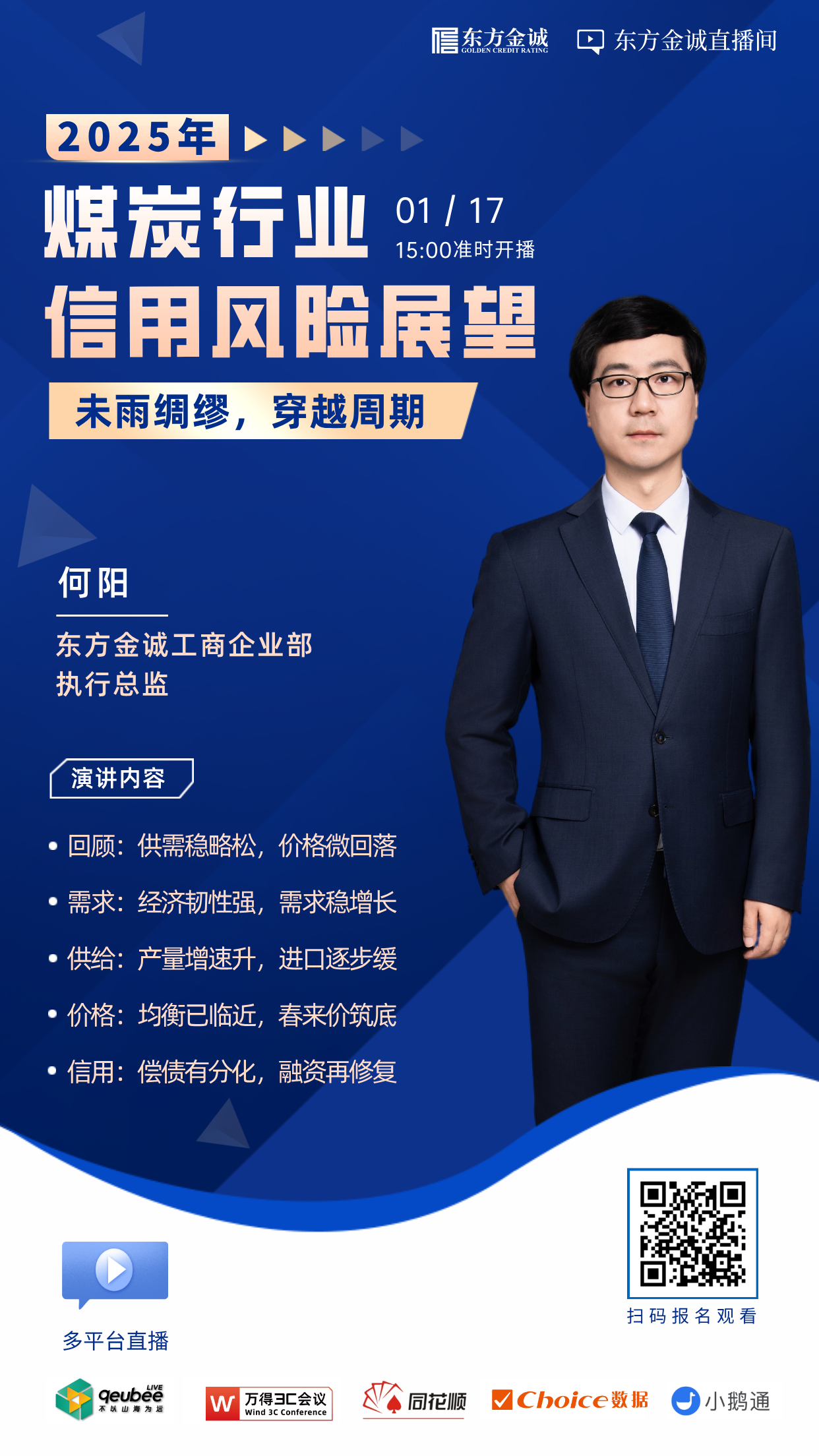 为了更好地发挥金诚研究“三个服务”的作用,进一步强化与社会各界的学习、研讨和交流,东方金诚于2025年1月17日组织“未雨绸缪 穿越周期——2025年煤炭行业信用风险展望”线上交流会,分享对相关领域的研究和思考。