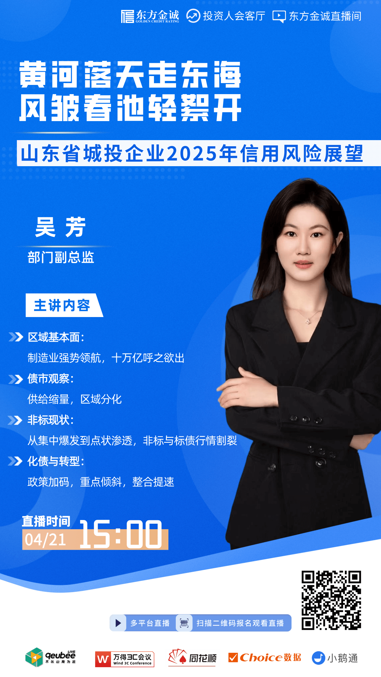 为了更好地发挥金诚研究“三个服务”的作用,进一步强化与社会各界的学习、研讨和交流,东方金诚于2025年4月21日组织“黄河落天走东海 风皱春池轻絮开——山东省城投企业2025年信用风险展望”线上交流会,从山东省的区域基本面、债市观察、非标现状、化债与转型四个方面,对山东省区域及城投发展现状进行分析和展望。