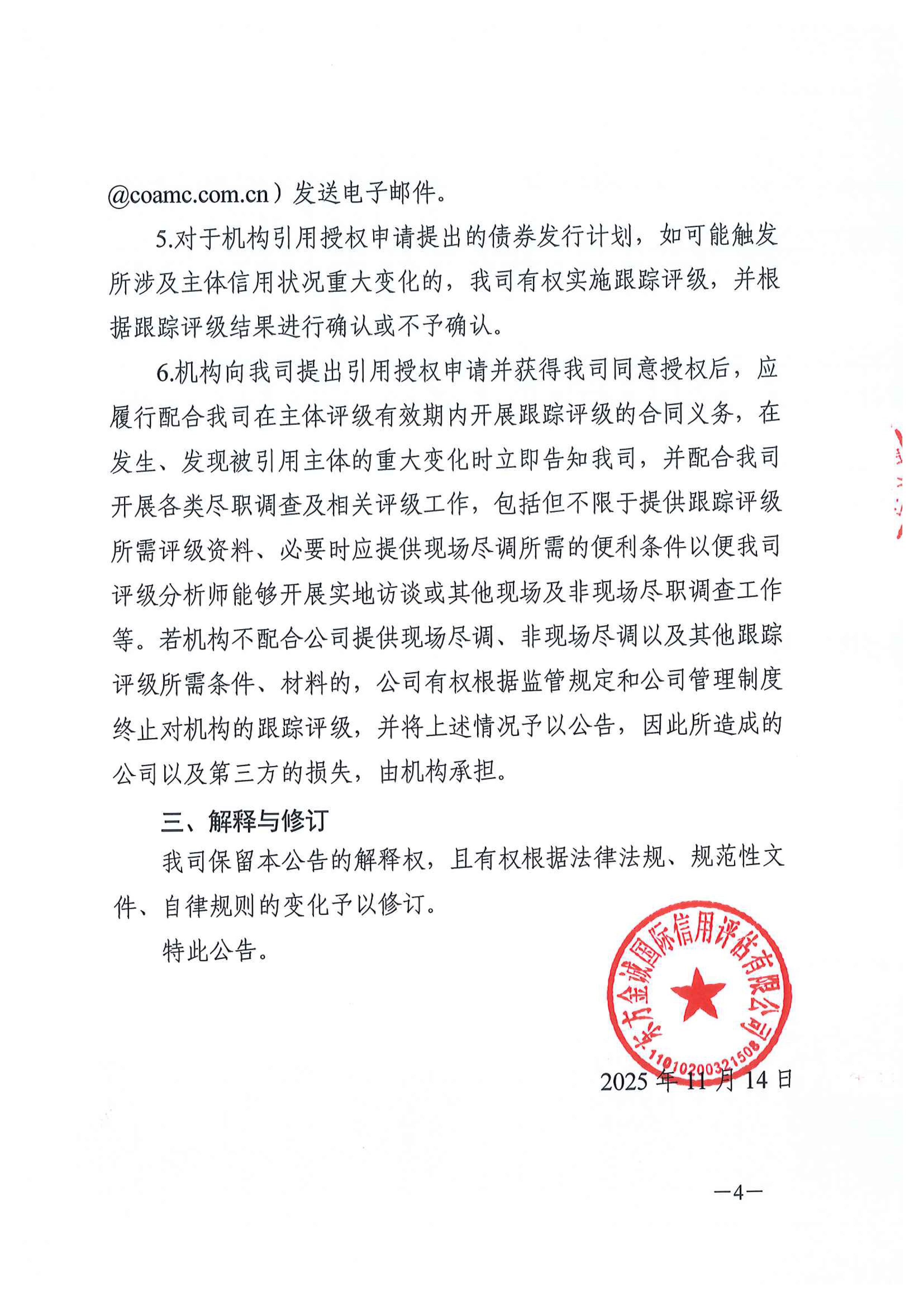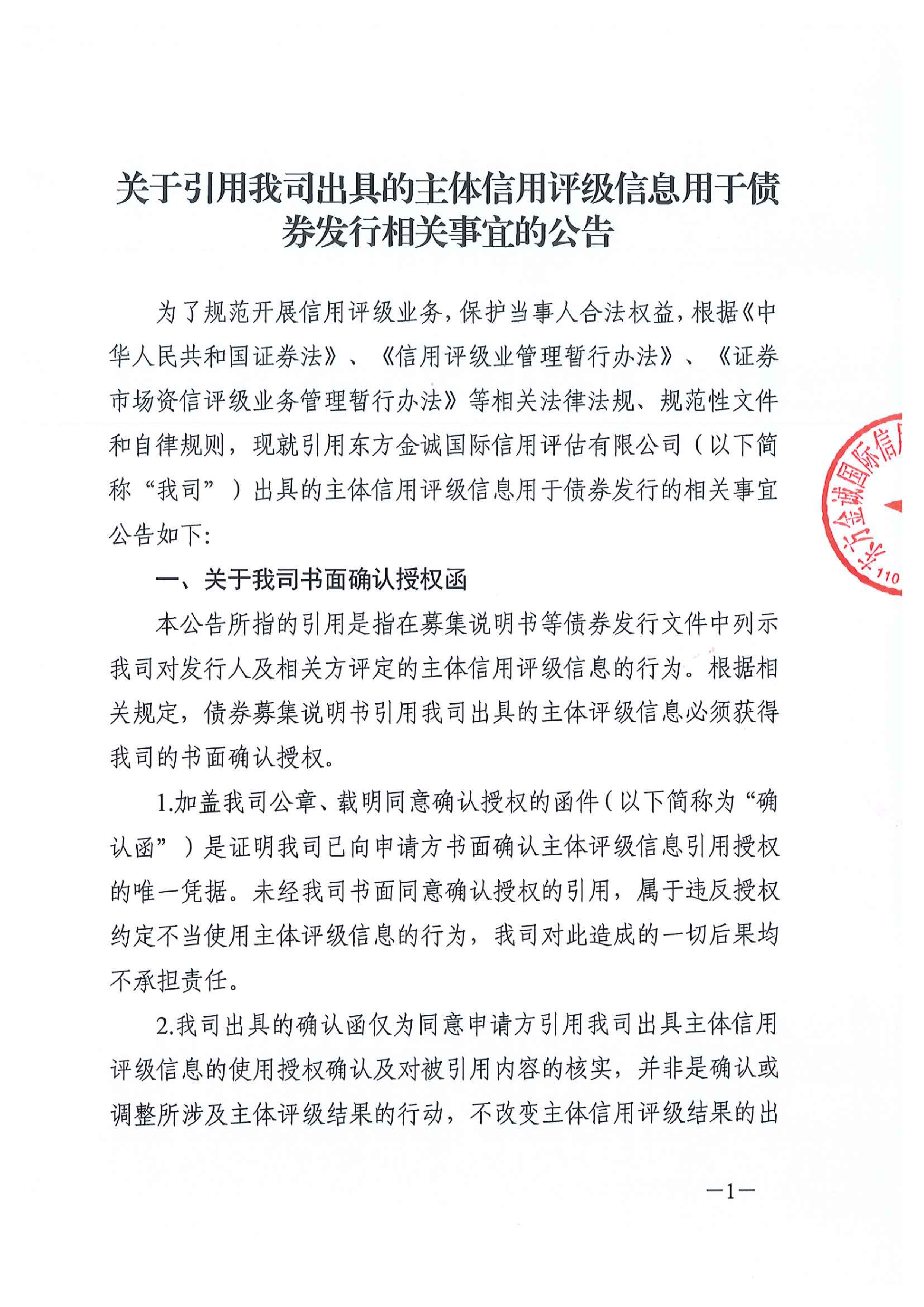 关于引用我司出具的主体信用评级信息用于债券发行相关事宜的公告