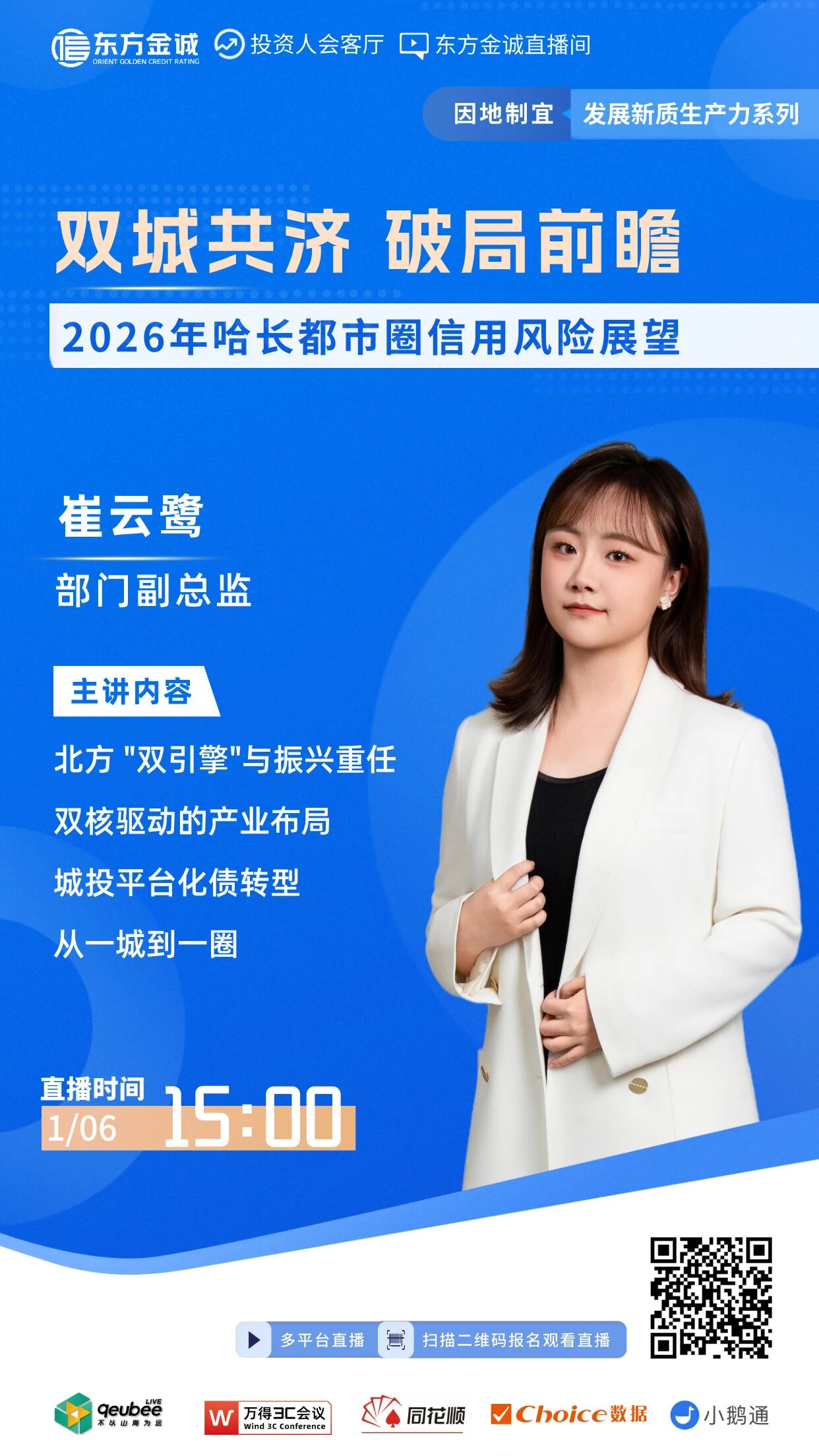 为了更好地发挥金诚研究“三个服务”的作用,进一步强化与社会各界的学习、研讨和交流,东方金诚计划于2026年1月6日(周二)15:00,组织“双城共济,破局前瞻-2026年哈长都市圈信用风险展望”线上交流会,与您一起从哈长都市圈的战略定位、产业发展、城投转型和未来展望四个方面,思考哈长都市圈区域及城投发展现状。