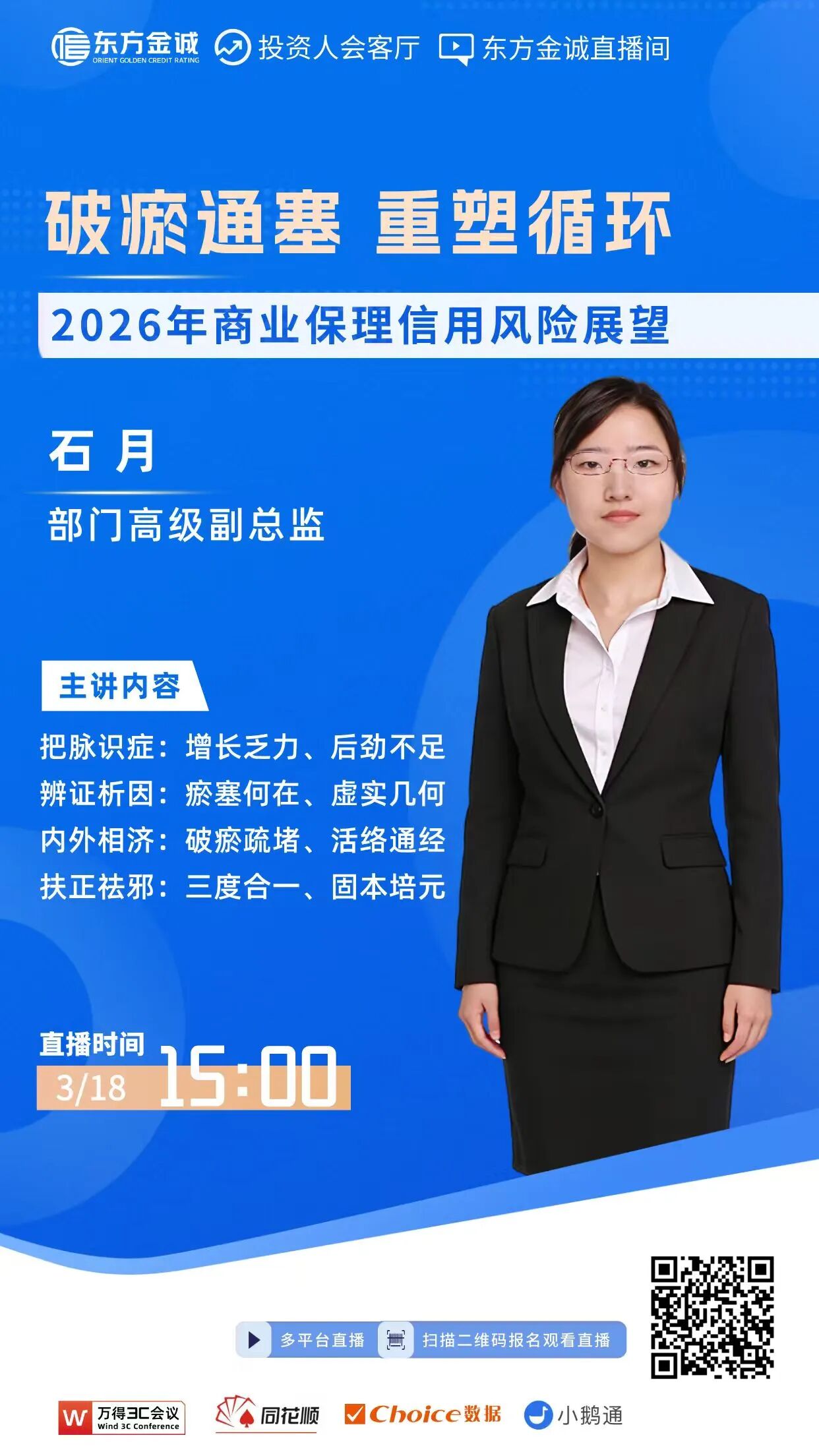 为了更好地发挥金诚研究“三个服务”的作用,进一步强化与社会各界的学习、研讨和交流,东方金诚计划于2026年3月18日(周三)15:00,组织“破瘀通塞,重塑循环——2026年商业保理信用风险展望”线上交流会,分享我们关于相关领域的思考和研究。
