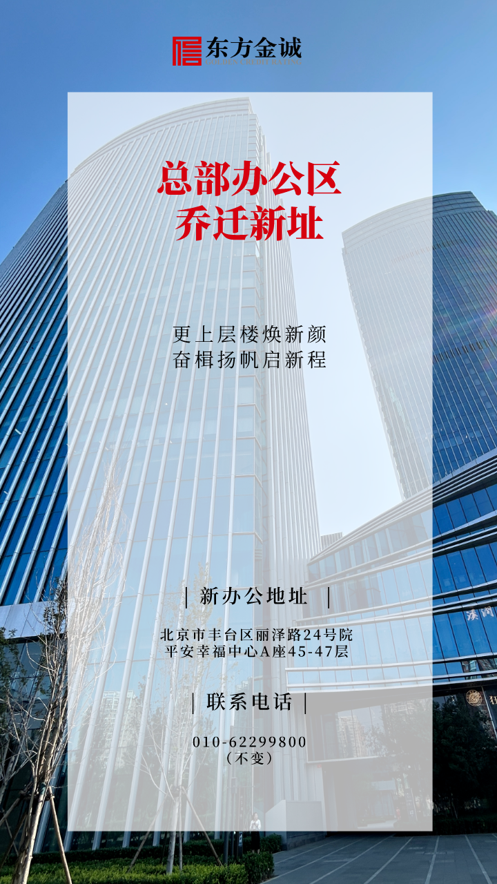 承蒙社会各界长期以来的大力支持与指导,在此,东方金诚全体员工谨表示由衷感谢!自2023年10月7日起,东方金诚搬迁至新的办公地址。