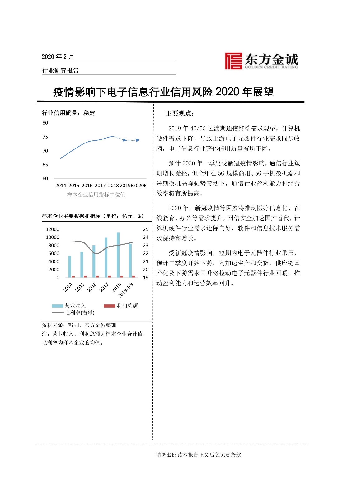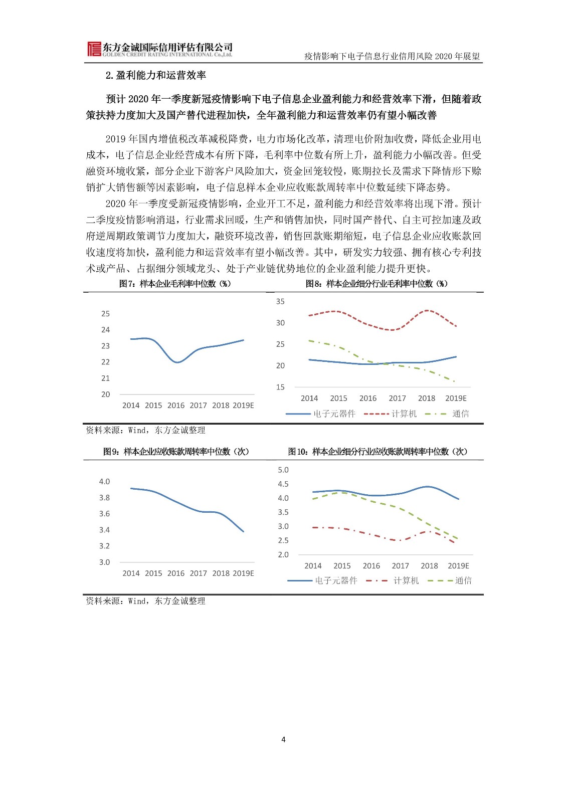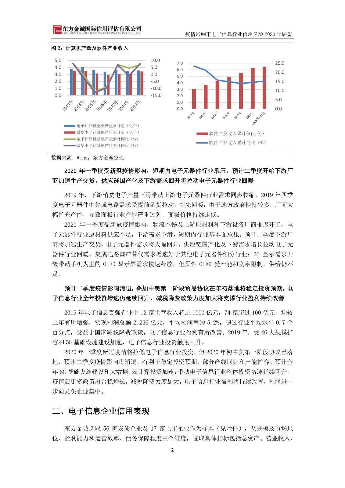 2019年4G/5G过渡期通信终端需求观望,计算机硬件需求下降,导致上游电子元器件行业需求同步收缩,电子信息行业整体信用质量有所下降。
