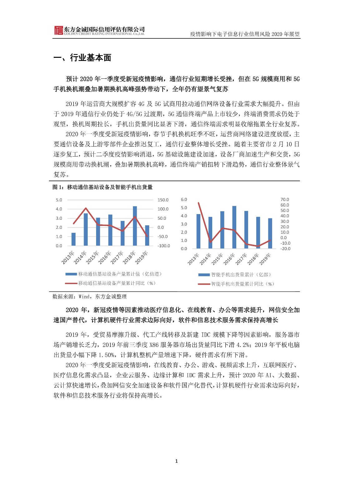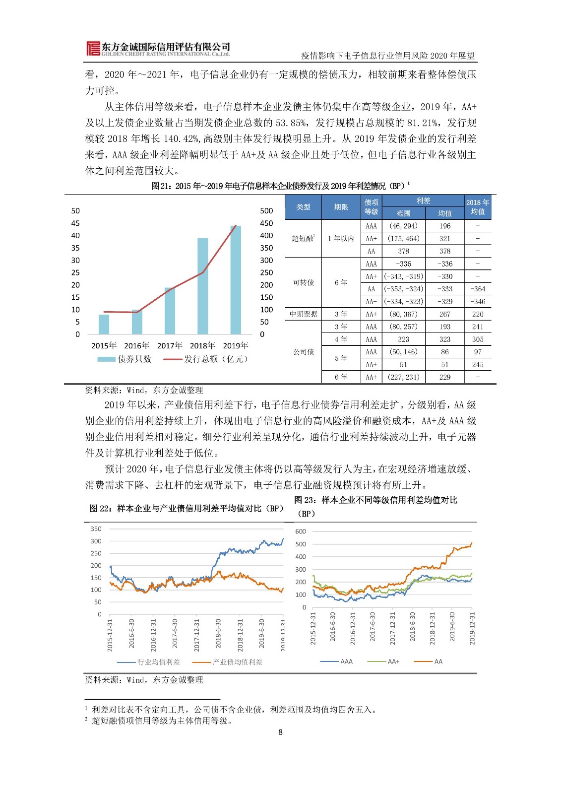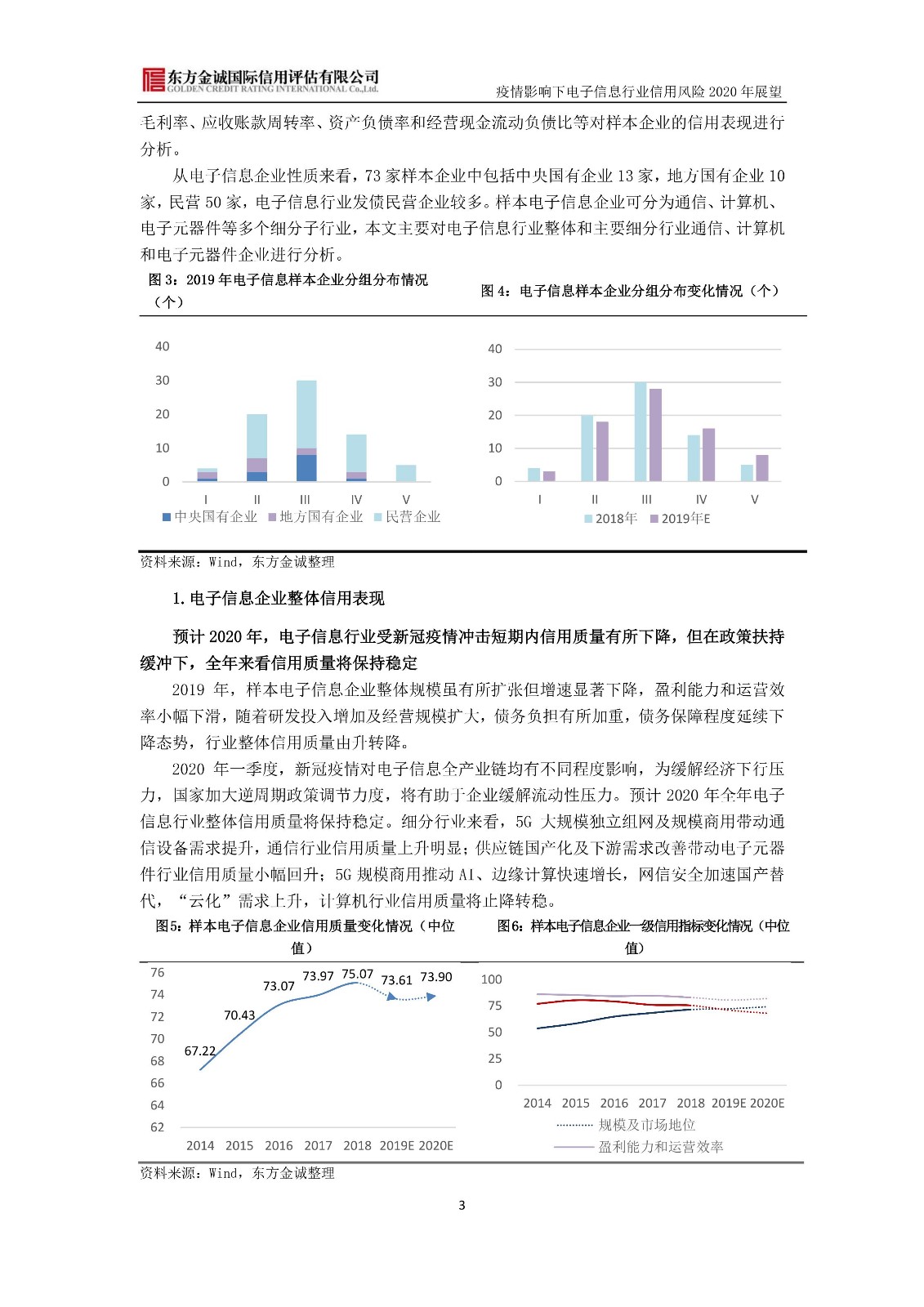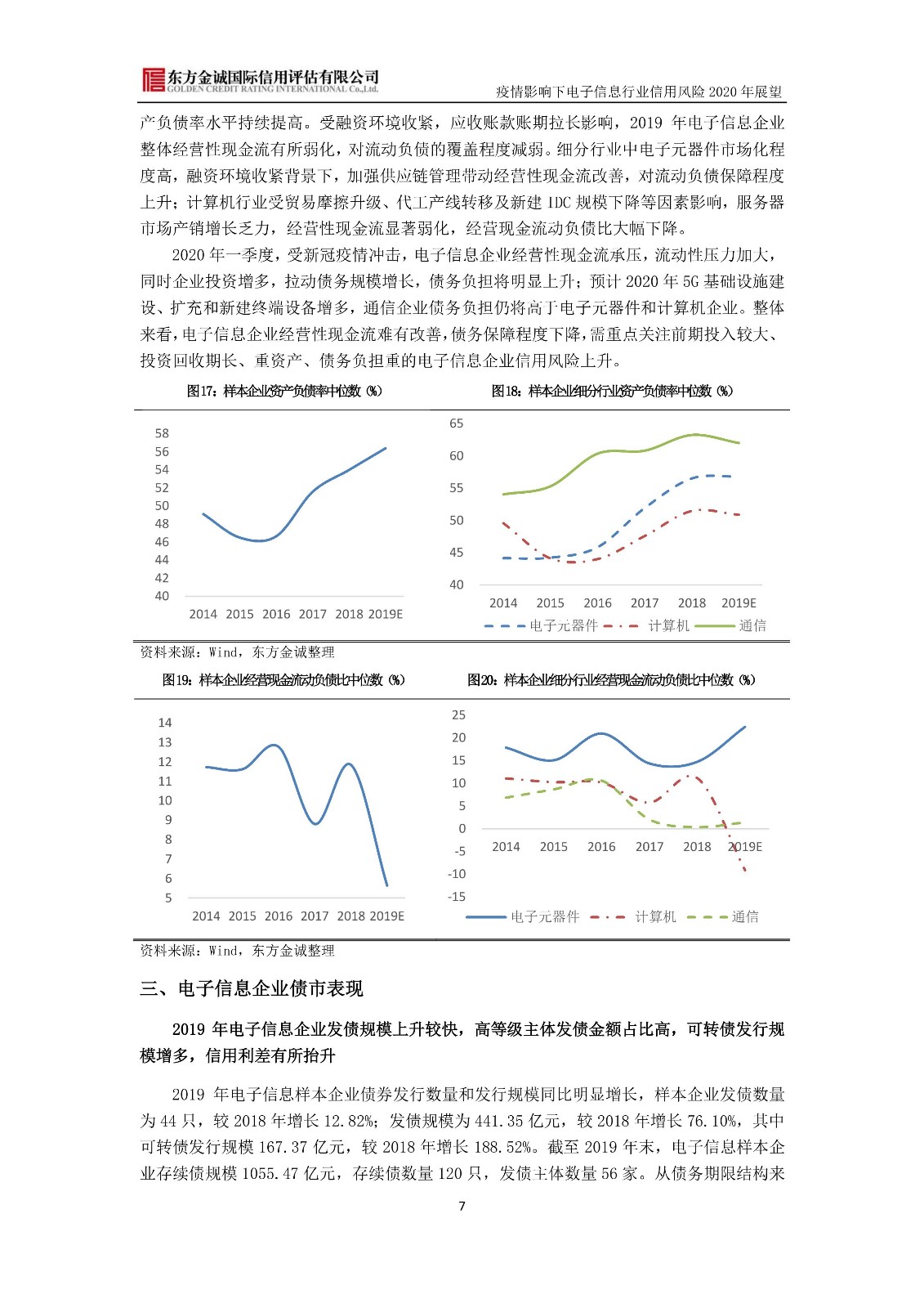 2019年4G/5G过渡期通信终端需求观望,计算机硬件需求下降,导致上游电子元器件行业需求同步收缩,电子信息行业整体信用质量有所下降。